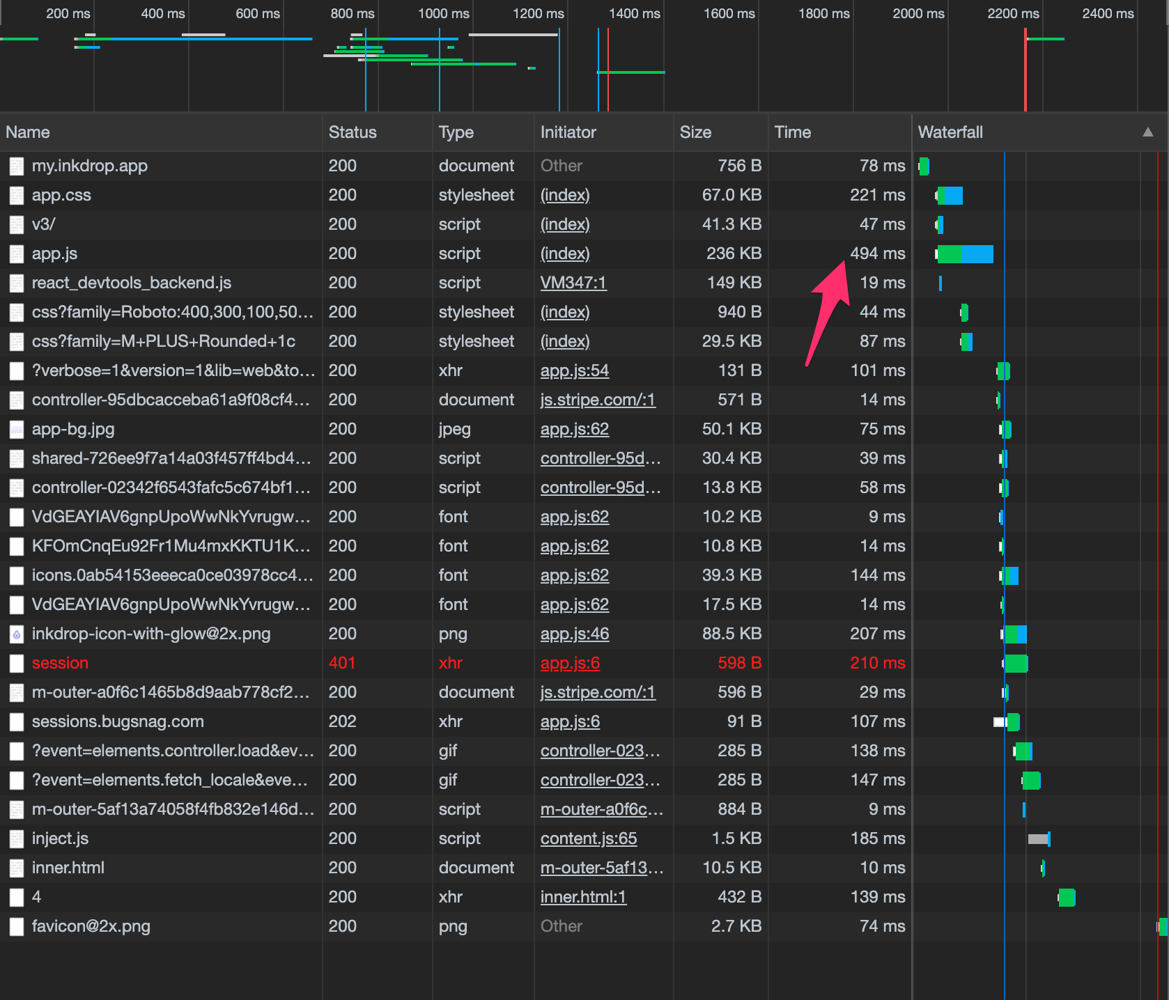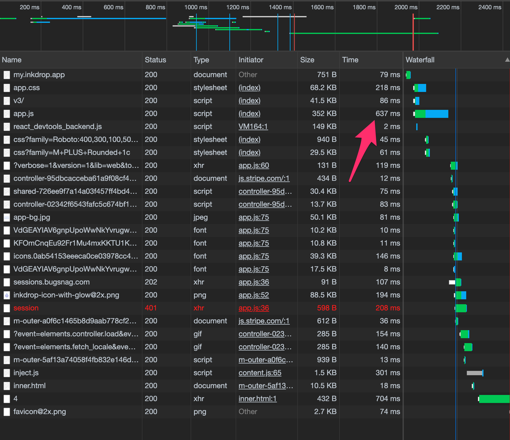 I took this note when the page load performance of my.inkdrop.app was pretty bad.
