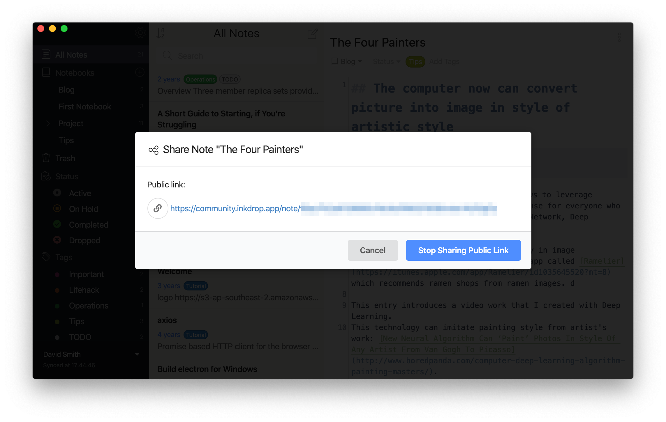 Publishing notes on the web comes in handy if you are working on a team project or just passing along useful tips to friends. It allows you to share your Markdown notes with anyone, even those who don't use Inkdrop.